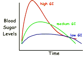 Food low on GI scale tend to release glucose slowly. Foods high on GI scale release glucose expeditiously.
